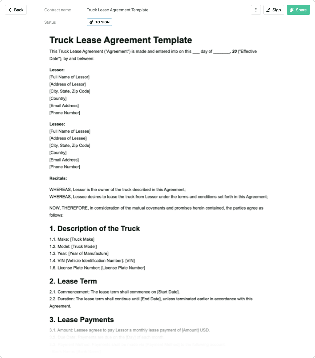 Truck Lease Agreement Pre built Template AirSlate SignNow