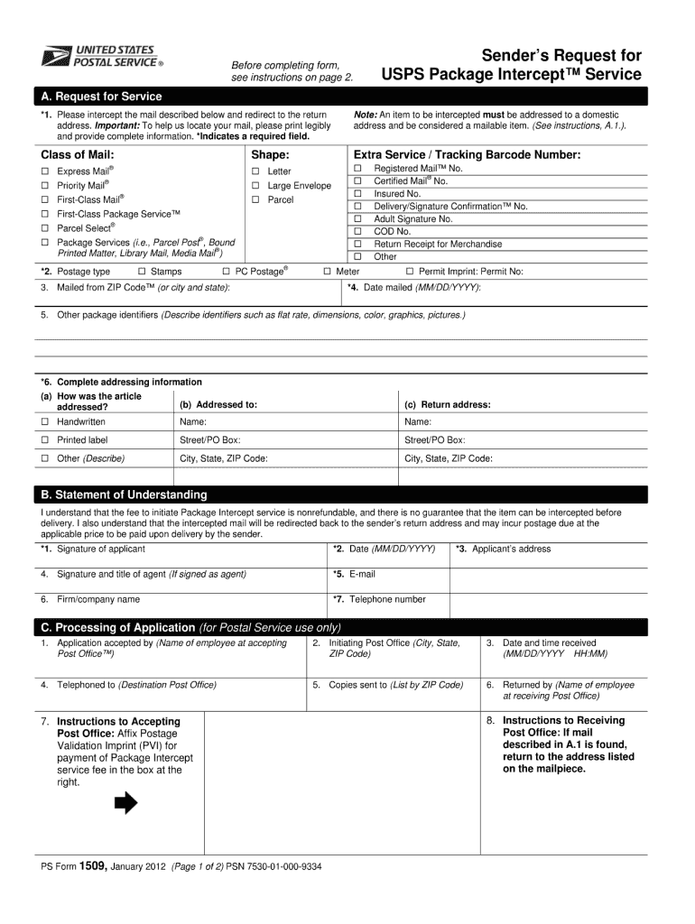 2012 2025 Form USPS PS 1509 Fill Online Printable Fillable Blank PdfFiller