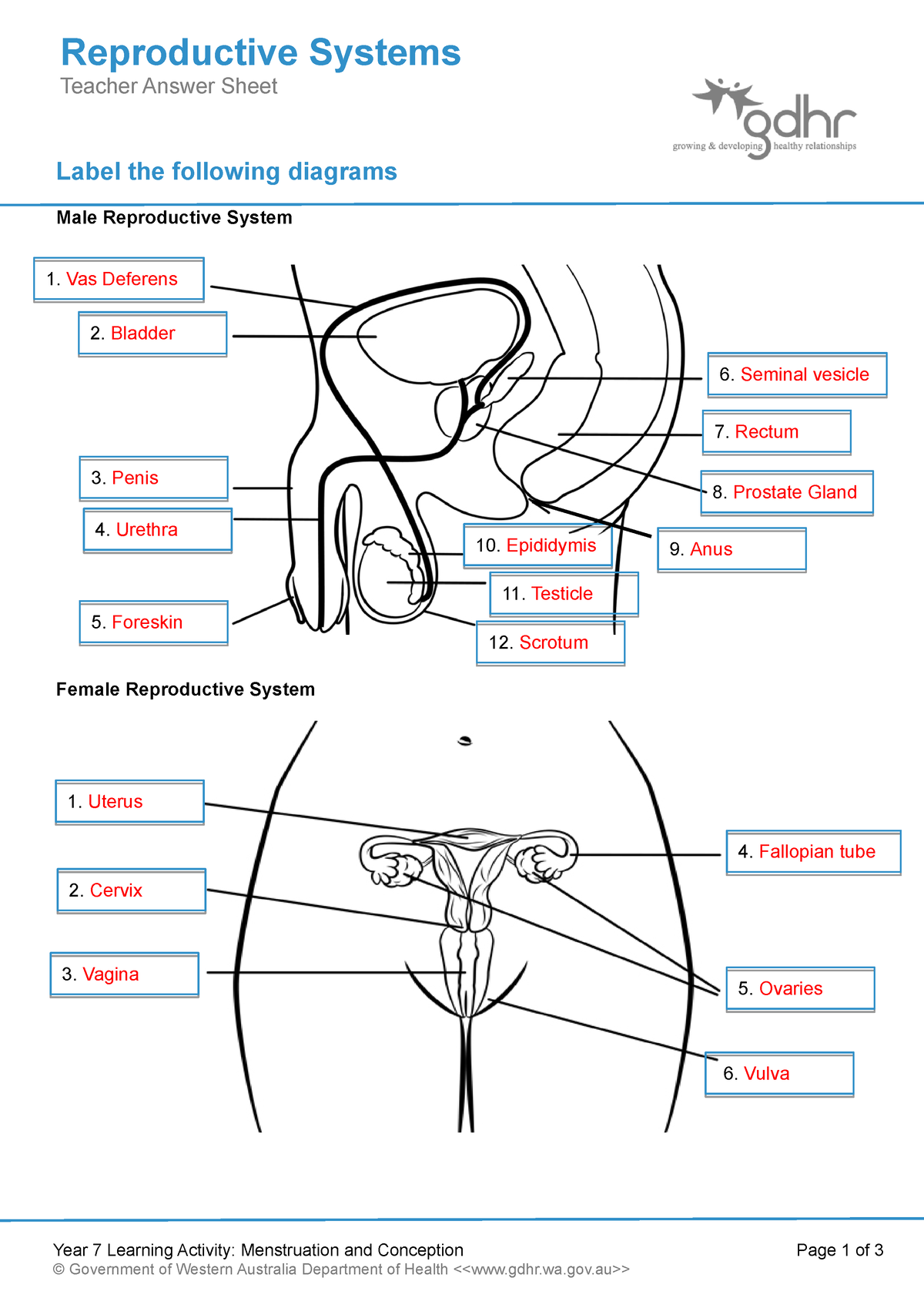 2 1 1 Reproductive Systems Teacher Answer Sheet Label The Worksheets Library
