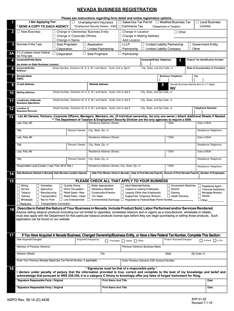 2019 2025 Form NV APP 01 00 Fill Online Printable Fillable Blank PdfFiller