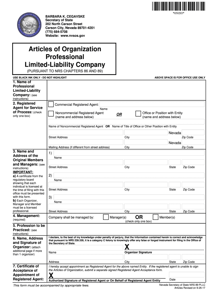 State Of Nevada Llc Free Printable Form Forms