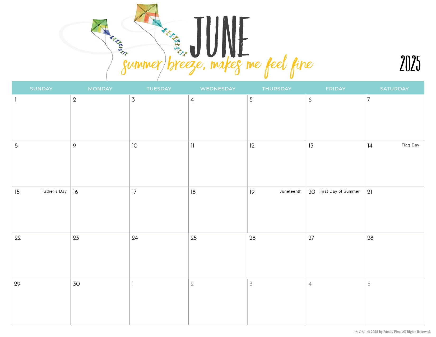 Summer 2025 Printable Calendar