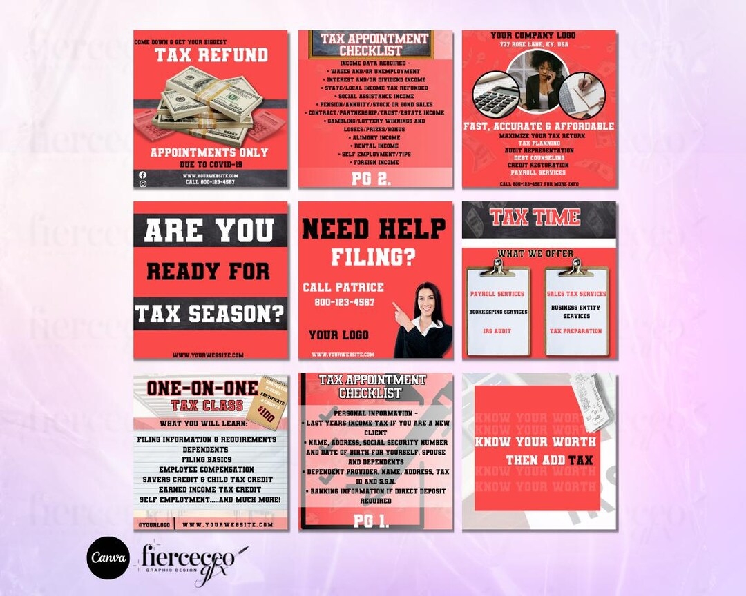 Tax Pro Flyers Green Tax Season Flyer Bundle Premade Flyer Design Tax Instagram Templates Tax Preparation Templates Etsy